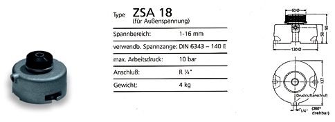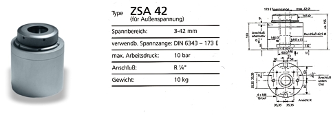 Zangenspannstock Typ ZSA 42: Spannweite 3-42 mm, Spannkraft 60kN