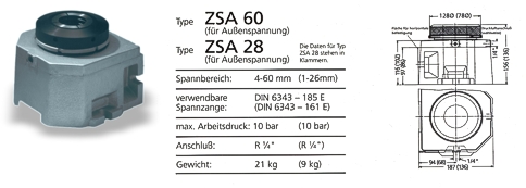 Zangenspannstock Typ ZSA 60: Spannweite 4-60 mm, Spannkraft 70kN